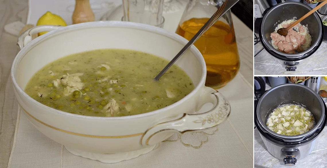 Dodati grašak, posoliti po ukusu i naliti 500 ml vode.