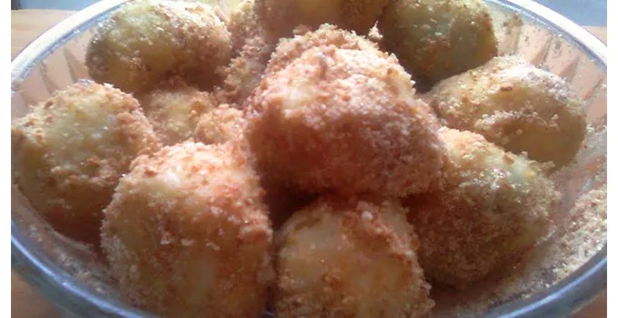 • Rešetkastom kašikom izvaditi ih u činiju i posuti obilno sa plazma keksom i šećerom u razmeri 2:1