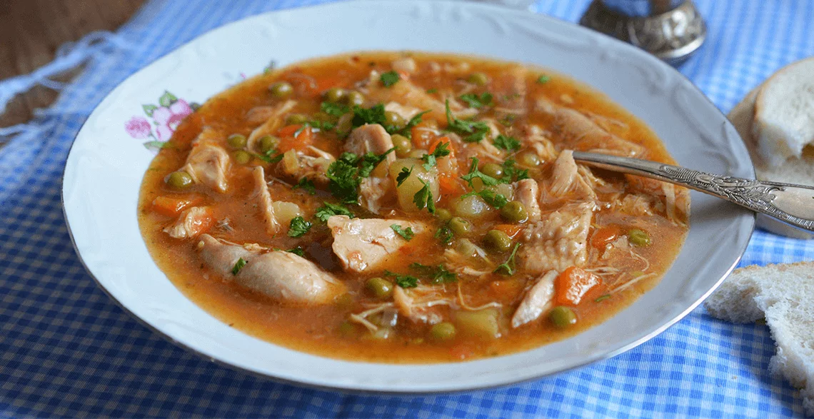 Dodati marinirana krilca, kao i sitno seckanu šargarepu, krompir isečen na manje kockice, grašak, tucanu papriku i lovor.