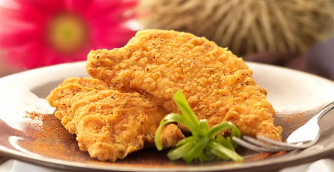 Piletinu uvaljati u brašno, pa u pripremljenu smesu za pohovanje.