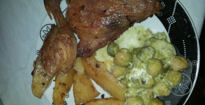 Preko njih staviti začinjene batake sa karabatkom, preliti uljem i peći u zagrejanoj rerni na 200 C.
