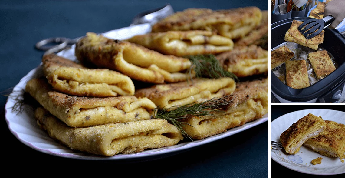 Na sredinu svake ispečene palačinke staviti otprilike po dva režnja pečenice i malo rendanog kačkavalja. Palačinku uviti kao “pismo”.