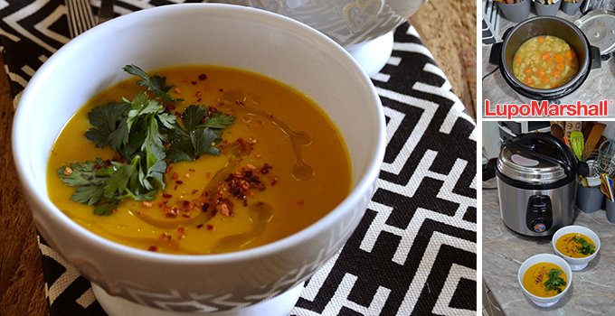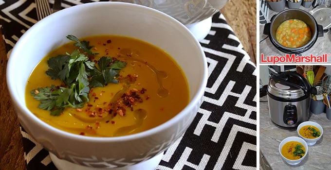 Dodati krompir, karfiol i šargarepu u lonac, pa naliti pripremljenom supom. Malo posoliti, po ukusu. Zatvoriti lonac i podesiti vreme kuvanja na 15 minuta.