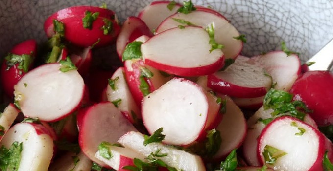 • Rotkvice iseckati na pola, staviti preko rukole, i dodati mladi luk iseckan na kolutiće.