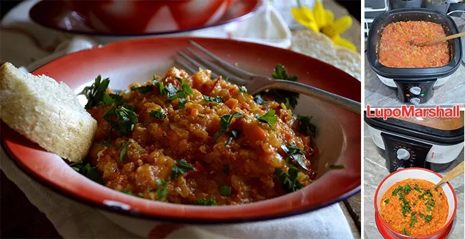 • Crni luk u Multi cooker-u propržiti na zagrejanom ulju. Dodati zatim tikvice, papriku i paradajz, i sve po ukusu posoliti i pobiberiti.