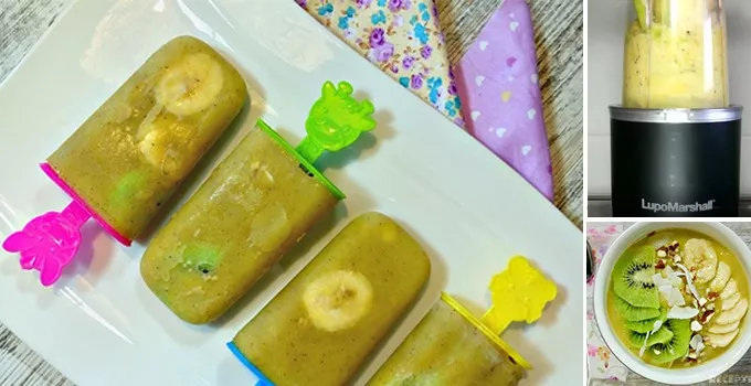 • Sadržaj iz blendera po želji možete presuti u posude i dekorisati komadićima ananasa, banane, badema i kokosa.