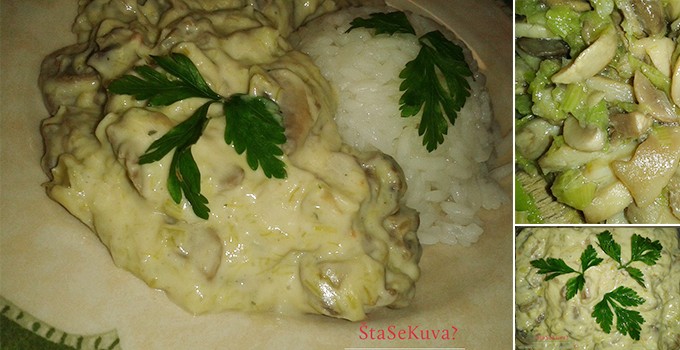 Šampinjone i praziluk naseći na kolutove i prodinstati na malo ulja.