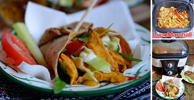 Na Multi cookeru 8 u 1 podesiti temperatur na 150 C, a tajmer na 20 minuta, pa sipati ulje. U zagrejano ulje dodati meso, pa uz mešanje propržiti pet minuta (dok meso ne pobeli), a zatim dodati crni luk i papriku. Posoliti po ukusu.
