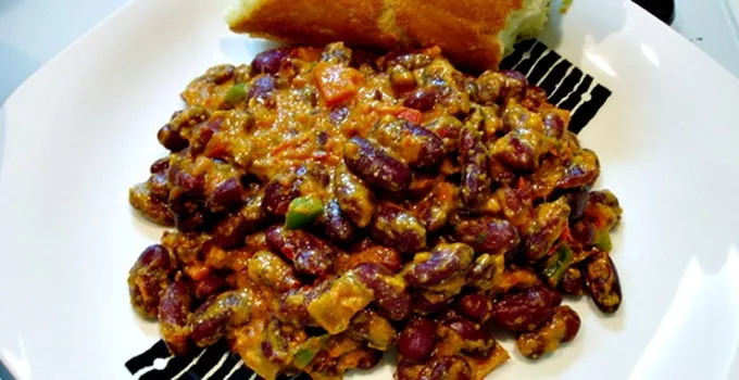 Odmah na pasulj dodajte ajvar i začine, sve pomešajte, te pri kraju dodajte pavlaku. Promešajte tako da se sastojci svi ravnomerno sjedine, zapecite uz mešanje još oko 5 min.