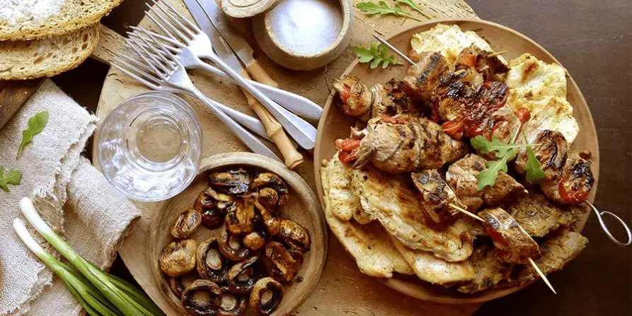 Tradicionalni roštilj čini mešano meso, tu su krmenadle, vešalica, vrat, kobasica, ražnjići, pljeskavice, ćevapi, belo pileće meso, krilca i naravno parče slanine.