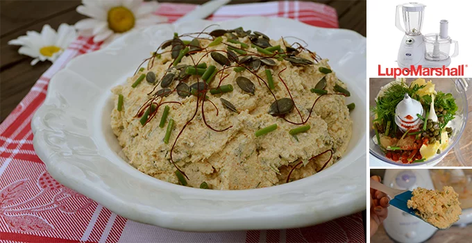 ubaciti sve potrebne sastojke i dobro izmešati, usitniti. Posoliti i pobiberiti po ukusu. Pripremljeni sirni namaz staviti u odgovarajuću činiju i ohladiti u frižideru pre služenja. Po želji ukrasiti.