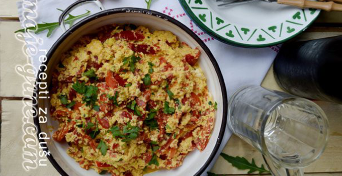 • Posoliti po ukusu i pobiberiti, dodati peršun, pržiti tek toliko da se jaja povežu, pa skloniti sa vatre i poslužiti toplo.