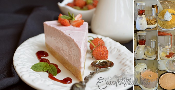 • U multipraktiku umutiti krem sir sa 120 g šećera u prahu i sokom od limuna. Dodati ispasirane jagode i sve lep osjediniti.