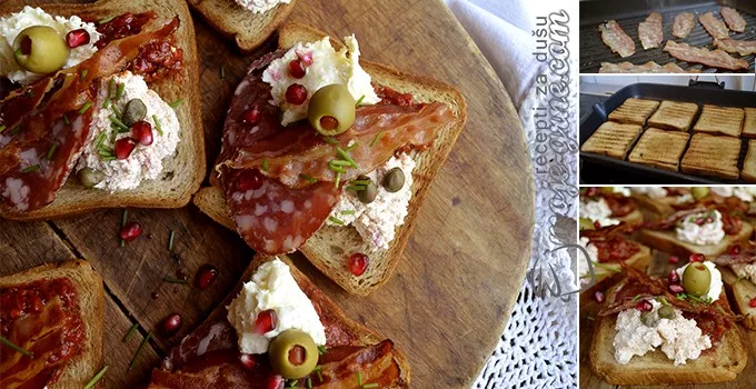 • Poređati kolutove kraljevske salame, po dva režnja, kajmak i po režanj prepečene slanine.