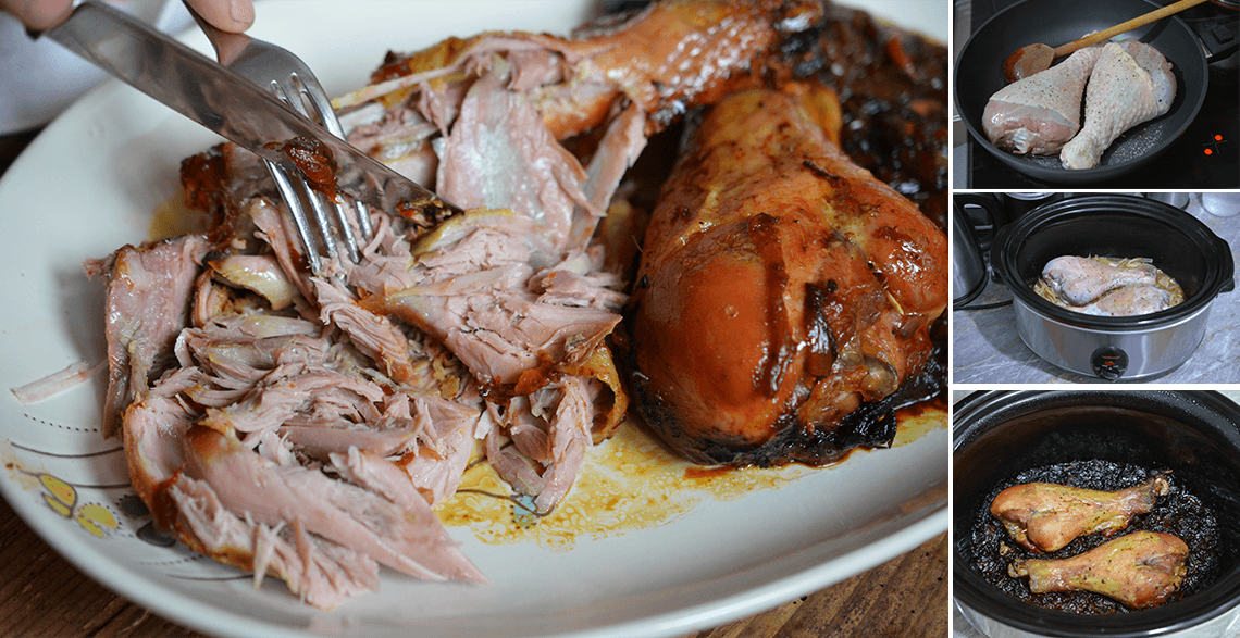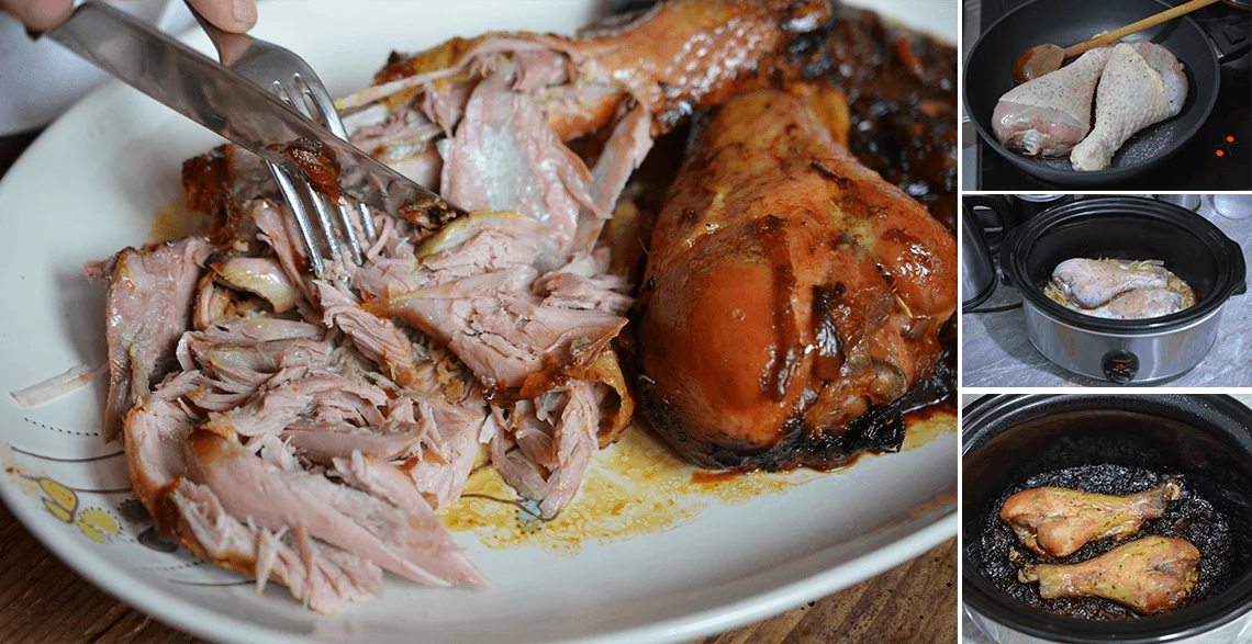 Poslužiti uz prilog po želji. Meso je jako fino i prosto se raspada na trakice, toliko se fino ispeče u krčku, a ostane sočno, ne presuši se pečenjem. Karamelizovan luk jelu daje poseban šmek. Iako će vam delovati na prvu loptu da je zagorelo, verujte da nije.