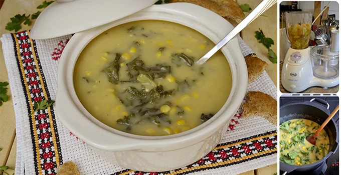 U kaserolu vratiti tečnost i masu iz blendera, pa dodati oceđeni šećerac i očišćeni lisnati kelj. Dodati seckani peršun. Ostaviti da proključa i kuva nekih 5 minuta, začiniti po ukusu i skloniti sa vatre.