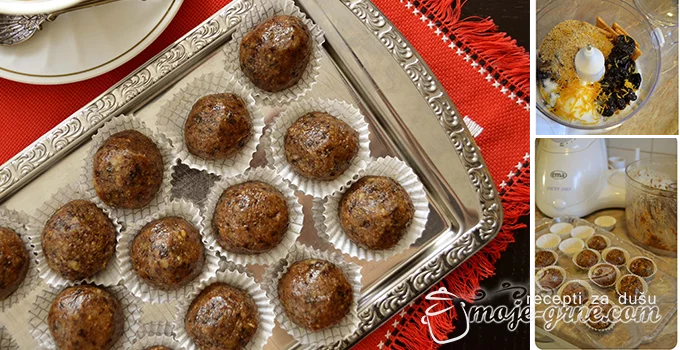 • Rukama, blago nauljenim, formirati kuglice veličine oraha, ređati ih u papirnate korpice i pre služenja, ostaviti da se ohlade i stegnu u frižideru.