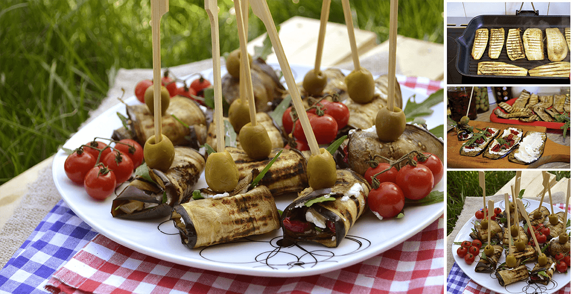 • Smotati rolnicu, pa je pričvrstiti pomoću čačkalice ili ražnjića, sa probodenom maslinom.
