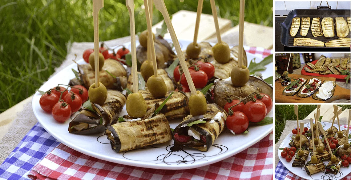 • Patlidžan iseckati uzduž na tanke režnjeve. Na gril tiganju ga zatim izgrilovati, pa skloniti sa strane i ostaviti da se ohladi.