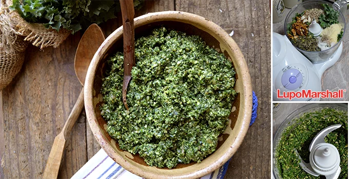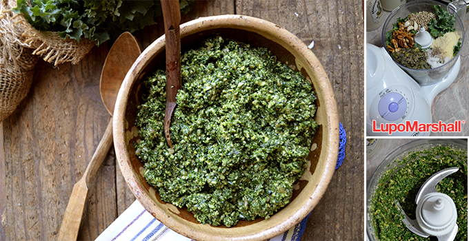 • Sve potrebne namirnice osim ulja staviti u  Ema multipraktik (seckalicu) . Dobro usitniti, pa naliti maslinovo ulje i mutiti da bude fino sjedinjeno.