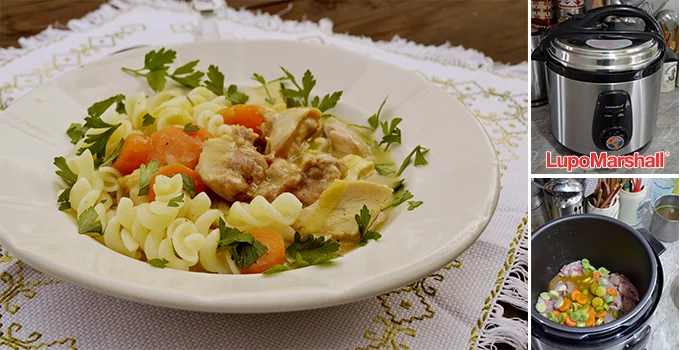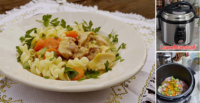 Po završetku vremena kuvanja, prateći uputstvo za upotrebu, otvoriti poklopac, pa dodati gustin, razmućen u vrlo malo hladne vode (1-2 kašike) i uz mešanje, kuvati dok se ne zgusne, minut – dva.