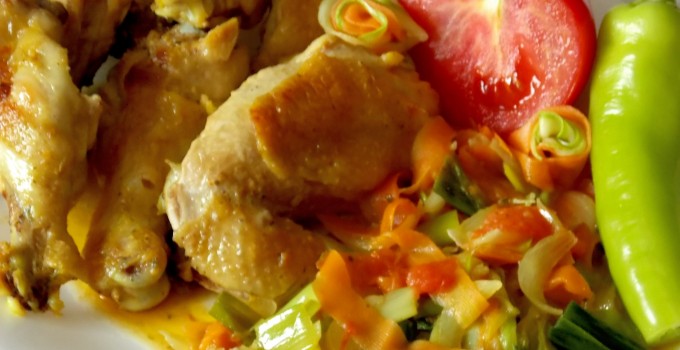 U toplo ulje staviti piletinu i poklopiti. Posle desetak minuta okrenuti na drugu stranu, ponovo poklopiti i dinstati meso još 10 minuta.
