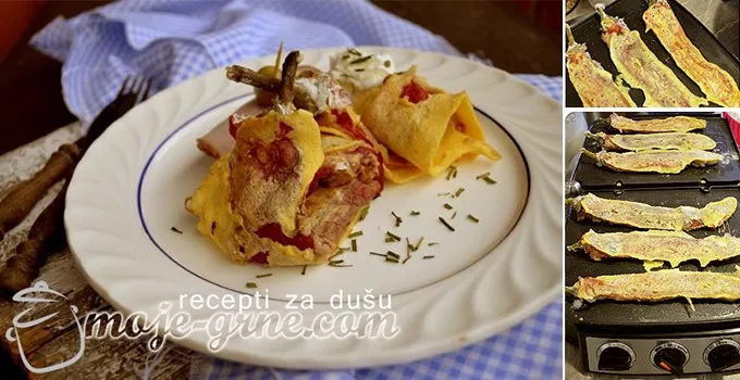 Pečene paprike očistiti, ocediti od viška tečnosti i svaku uvaljati dobro u brašno, a zatim u jaja i staviti na presu.