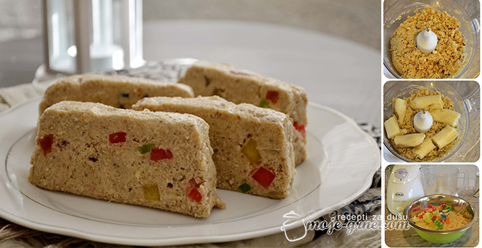 Pleh za pečenje dimenzija 30×10 cm obložiti alu folijom, pa masu iz blendera sipati i lepo „rastanjiti“. Pre služenja ostaviti da se dobro ohladi u frižideru, najbolje preko noći.