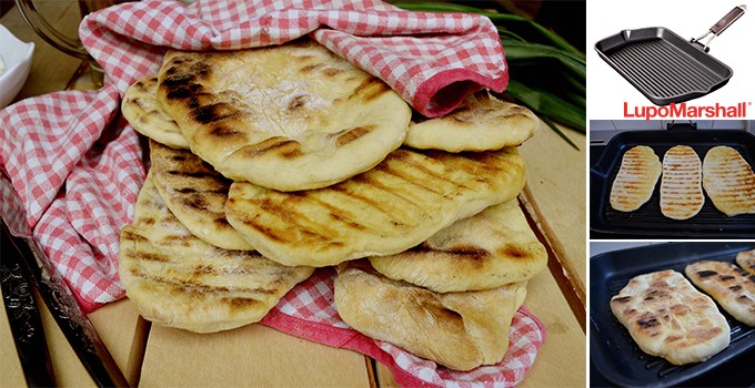 Rukama (ne oklagijom) razvlačiti testo i formirati uštipke, pa ih peći na gril tiganju, sa svake strane oko 3 minuta, dok lepo ne porumene. Poslužiti uz prilog po želji.