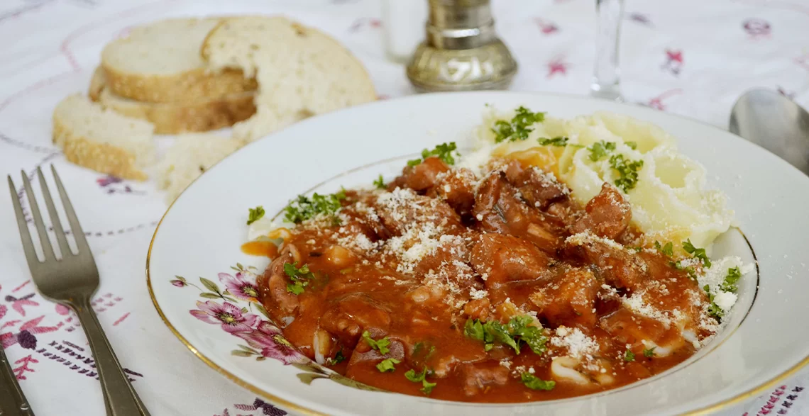 Po isteku vremena, pažljivo ispustiti pritisak iz lonca, otvoriti poklopac, pa dodati pasirani paradajz i po potrebi još malo začiniti. Dodati peršun.