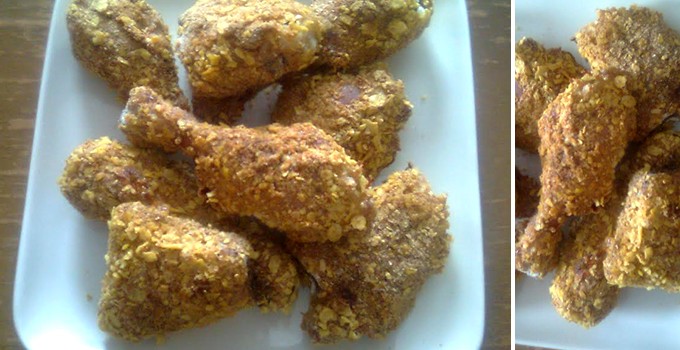 Pomešati izmrvljeni kornfleks sa čilijem ,karijem, solju, biberom i belim lukom u prahu.