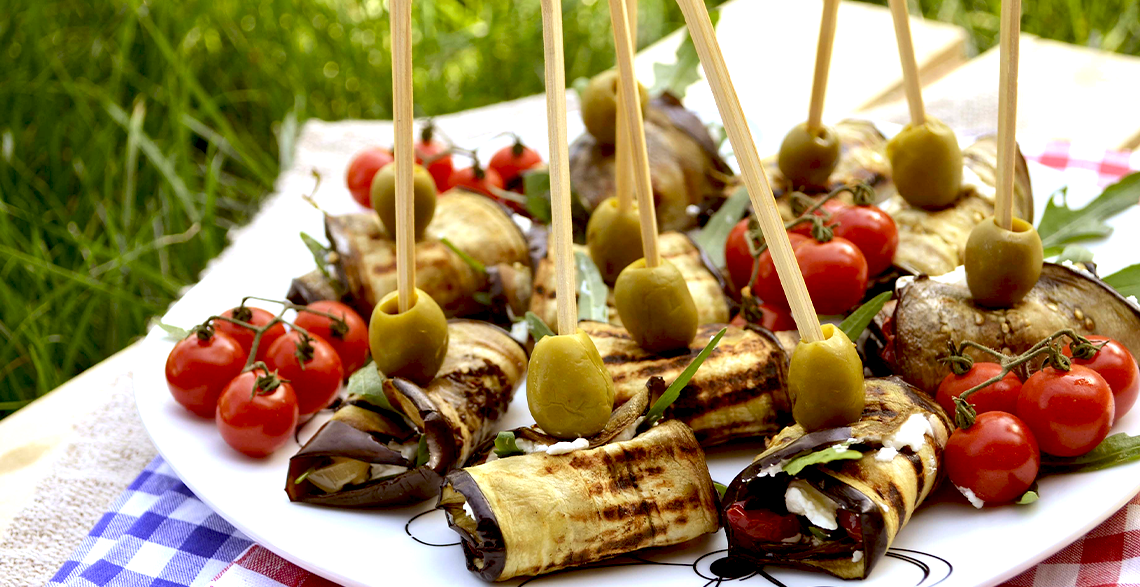 • Smotati rolnicu, pa je pričvrstiti pomoću čačkalice ili ražnjića, sa probodenom maslinom.