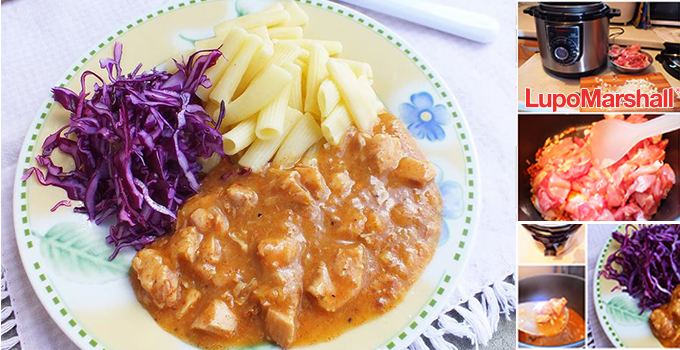 Zagrejatielektrični ekspres lonac, pa na ulju kratko prodinstati sitno seckani crni luk i meso, kome su dodati so, biber i aleva paprika.