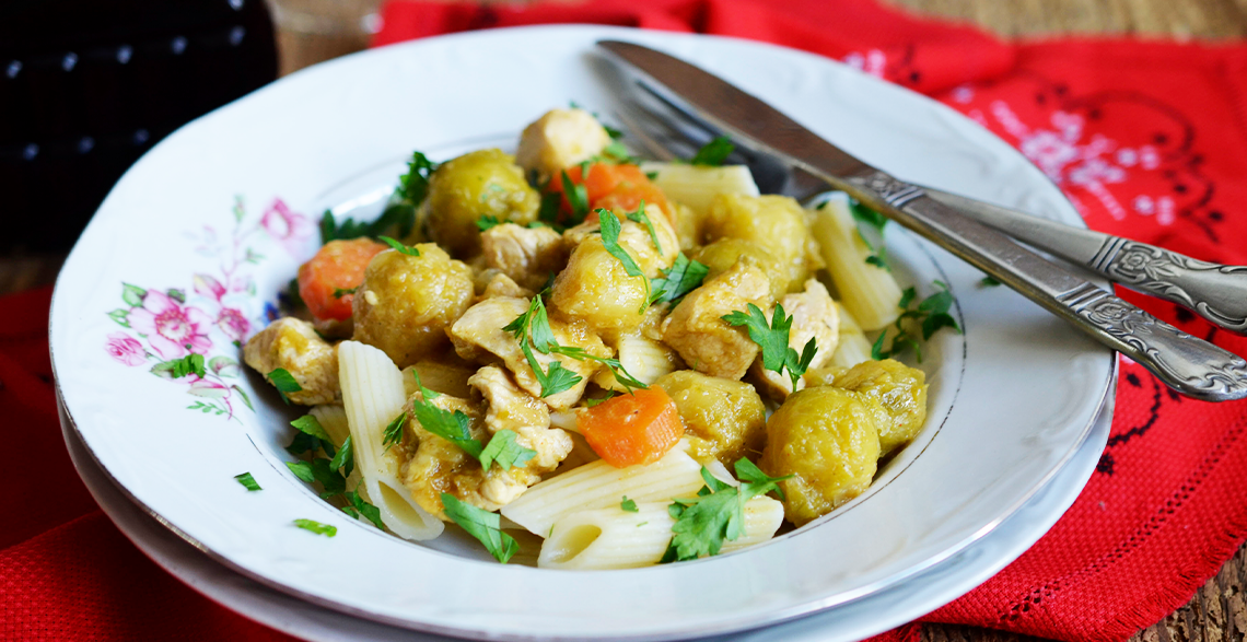 Jelo poslužiti sa skuvanim makaronama i pred služenje posuti seckanim svežim peršunom.