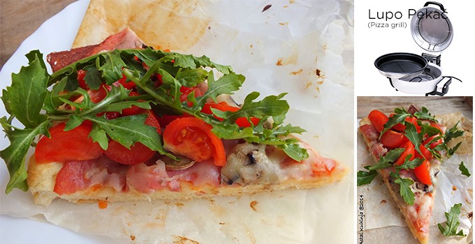 • Ugrejati pizza gril pekač 5 minuta. Za to vreme u tepsiju pekača staviti podlogu i na nju ređati fil.