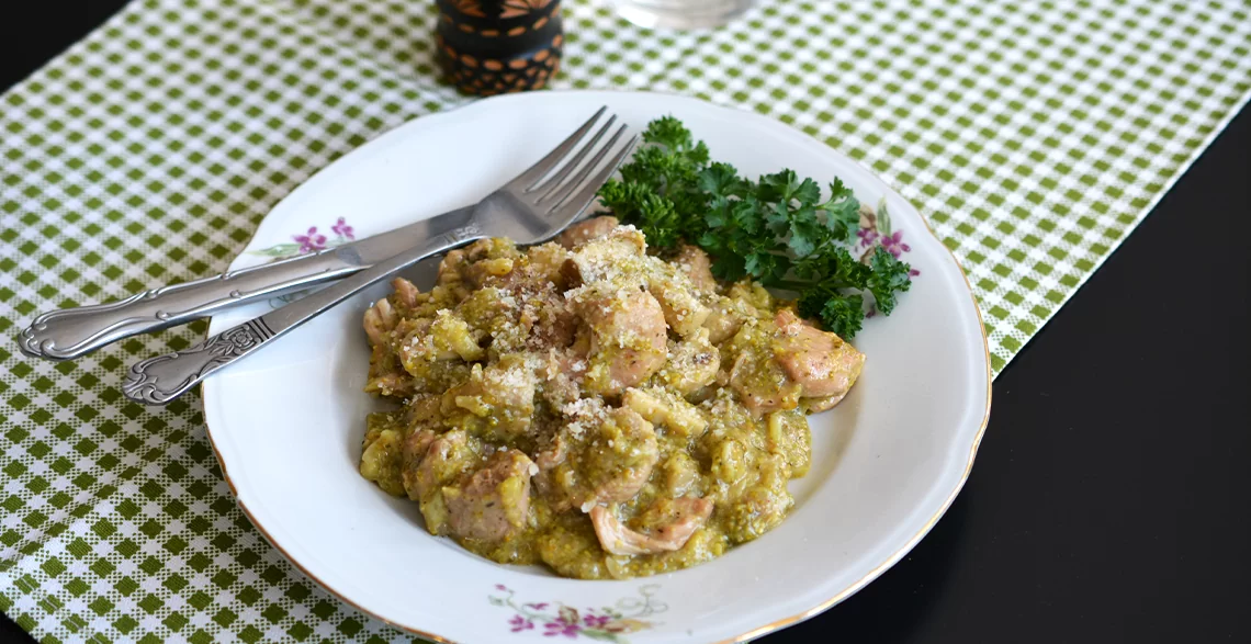 • Dodati zatim šampinjone i brokoli. Krčkati dok povrće ne omekša.
