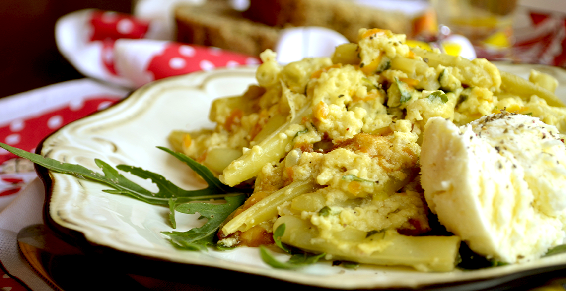 Jaja umutiti sa mlekom i dodati vezicu svežeg seckanog peršuna.